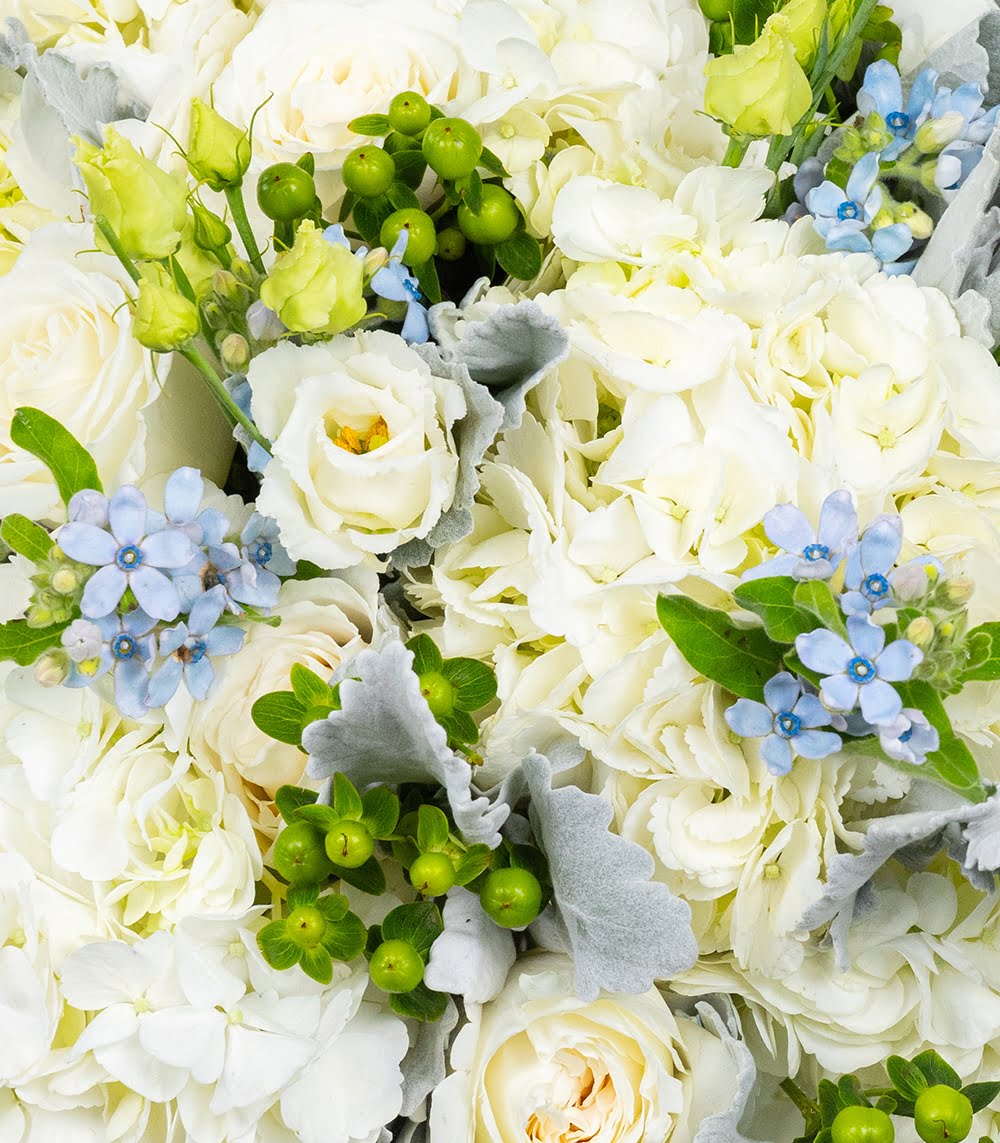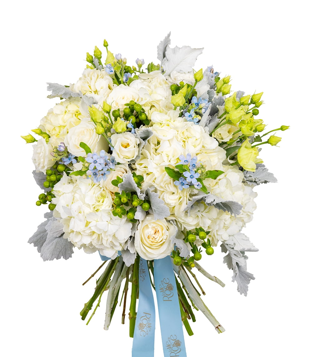 Cauți un buchet albastru și alb? Acum poți opta pentru unul special creat de artiștii nostri pentru cei care iubesc albastrul cerului!