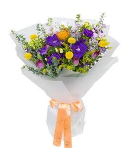 Recomandăm acest buchet mov de primăvară pentru situațiile în care dorești să feliciți, să mulțumești sau să îți reînnoiești gândurile pozitive față de o persoană importantă din viața ta, indiferent dacă este vorba despre persoana iubită sau o persoană apropiată, dragă ție.